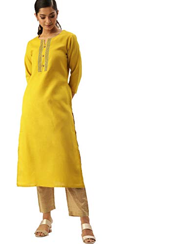 ₹1599Women Mustard Yellow Solid Straight Kurta with Thread Work
