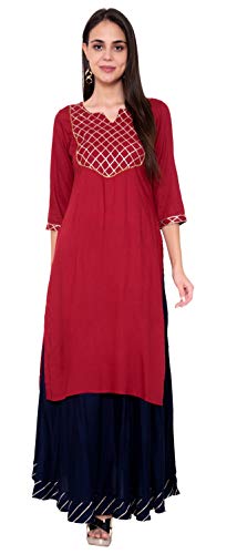Amayra Women’s Rayon Straight Kurti with Skirt (Maroon& Blue)