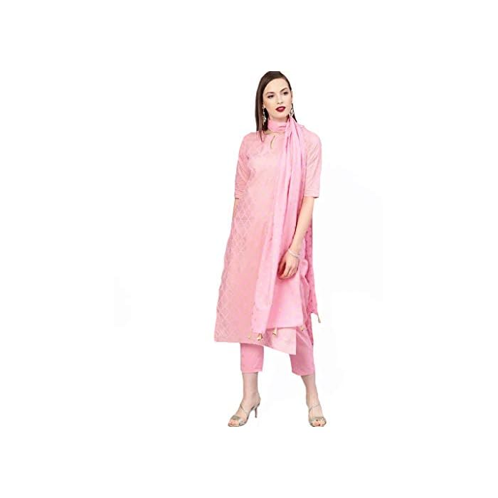 ANNI DESIGNER Women’s Cotton Foil Printed Straight Kurta with Pant & Dupatta(NAVLIK-PINK-001)