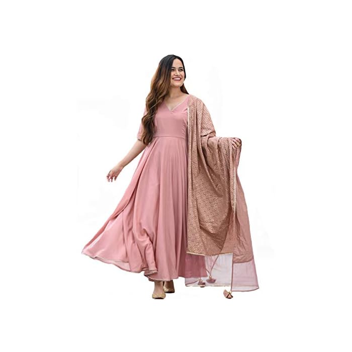 ANNI DESIGNER Women’s Pure Cotton Anarkali Kurta, Palazzos and Dupatta (SUBHA-Peach)
