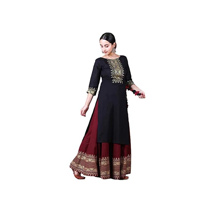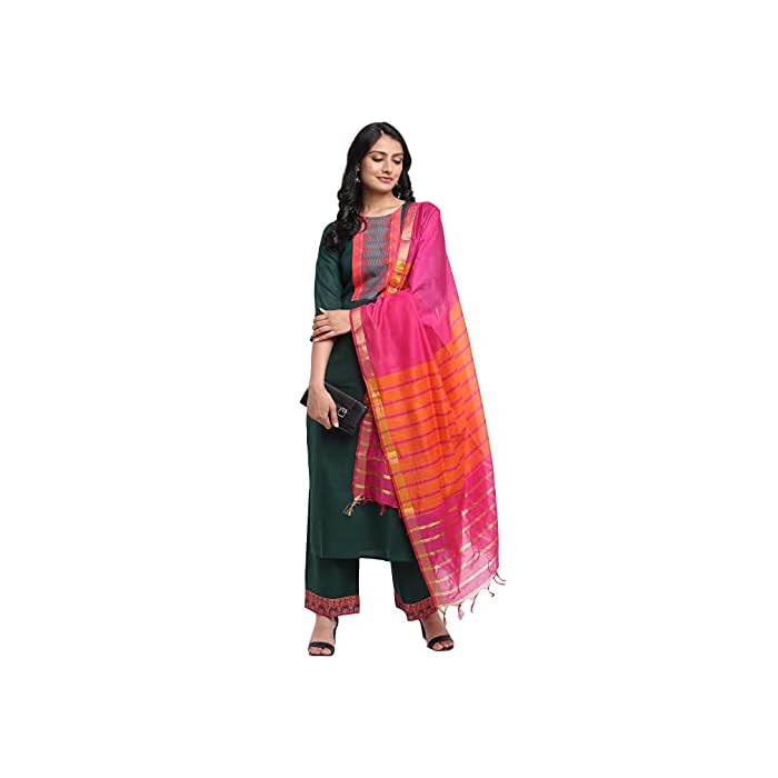 ANNI DESIGNER Women’s Cotton Golden Print Kurta with Palazzo & Dupatta