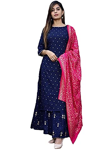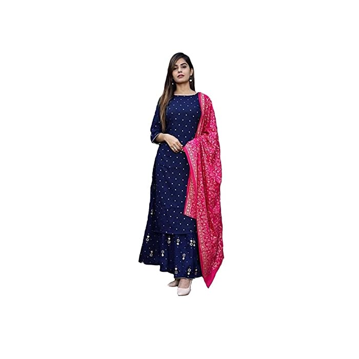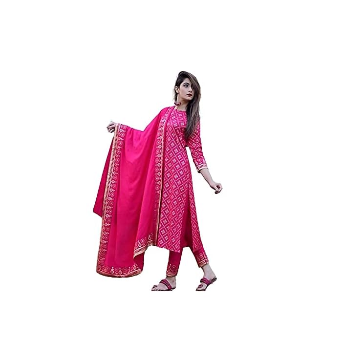 ANNI DESIGNER Women’s Rayon Printed Straight Kurta with Palazzo & Dupatta (Rayon)