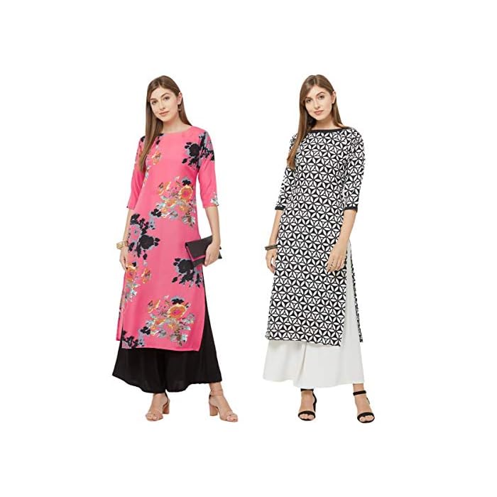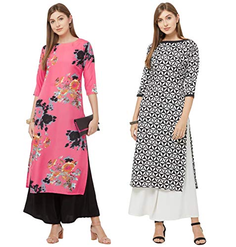 ANNI DESIGNER Women’s Multi-Coloured Crepe Straight Calf Length Ethnic Printed Kurti(Pack of 2)(KURTI-COMBO-201_1-Multi…