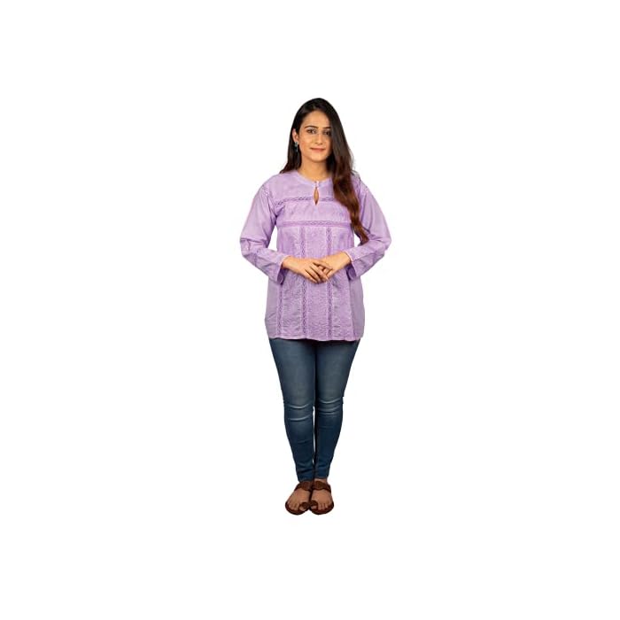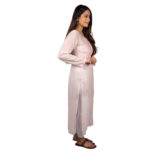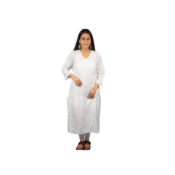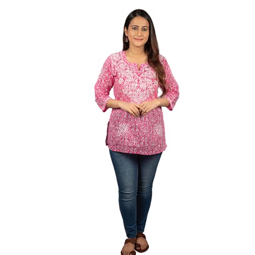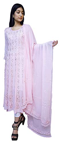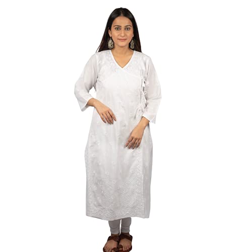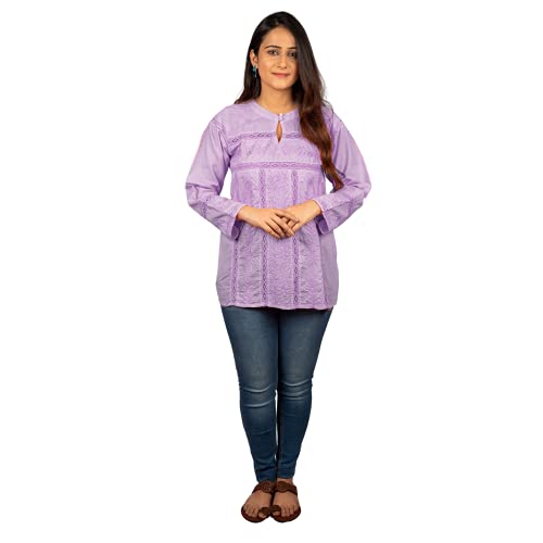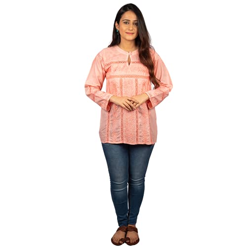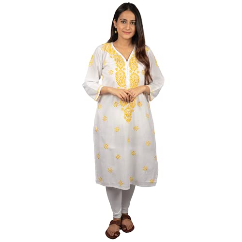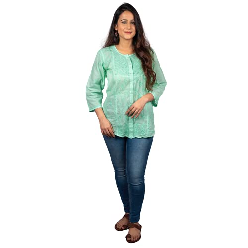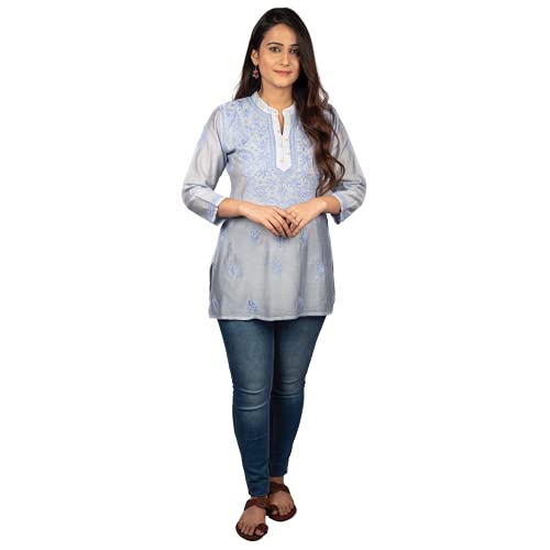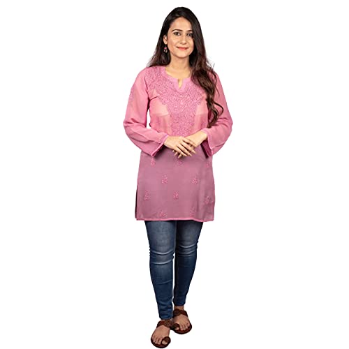 GOLDEN GHAF COUTURE Pure Georgette Hand Embroidered Chikankari Embellished Short Kurti/Kurta L