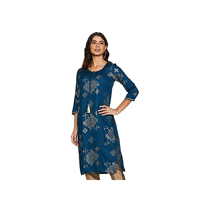Rangriti Women’s Ethnic Aqua Kurta (Size_L)