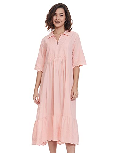Aarke Ritu Kumar Pink Schiffli Cotton Short Sleeve Midi Dress