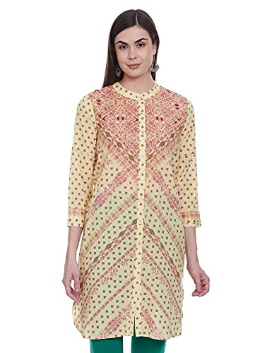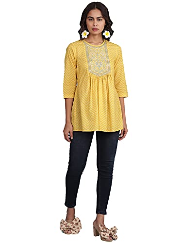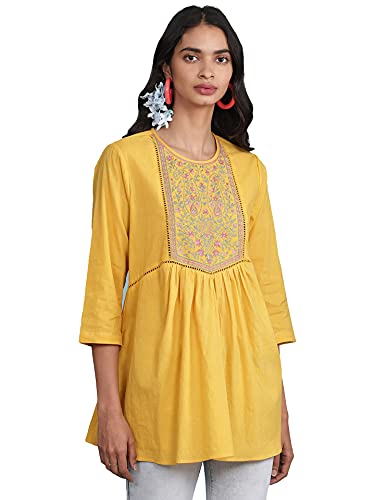 Aarke Ritu Kumar Round Neck Embroidered Yoke 3/4 Sleeve Kurti with Gathers at Waist