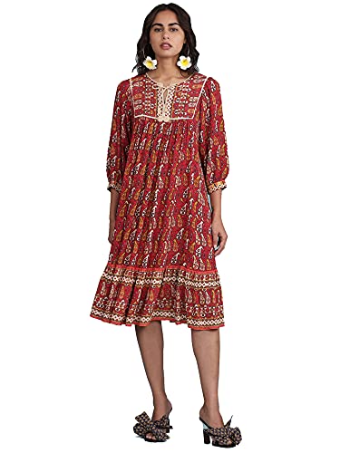 Aarke Ritu Kumar Round Neck 3/4 Sleeve Printed Dress with Tier