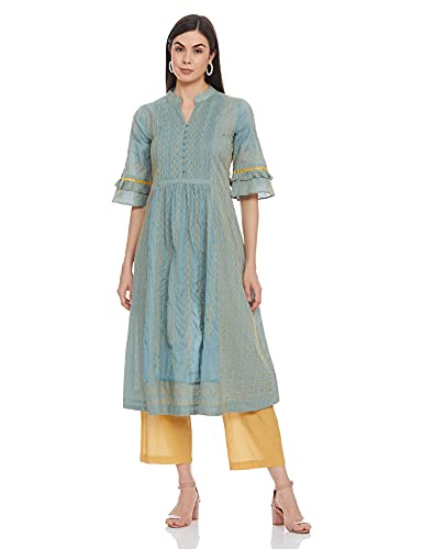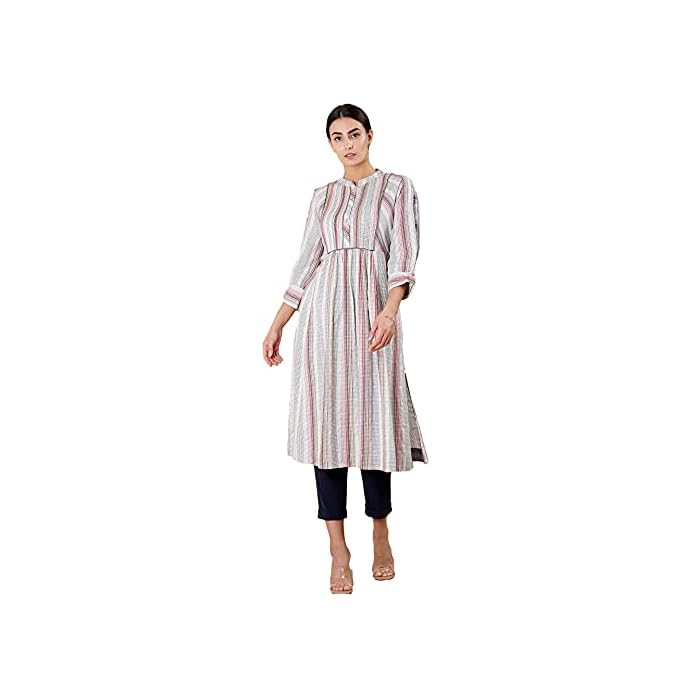 Ritu Kumar Band Collar Neck 3/4 Sleeves Yarn Dyed Kurta