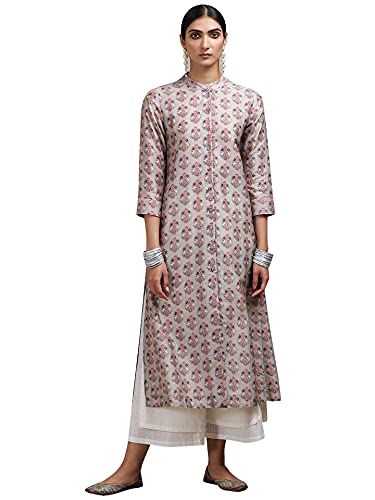 Ritu Kumar Grey Floral Print Chanderi Kurta