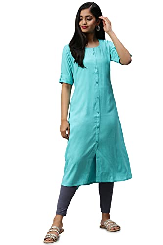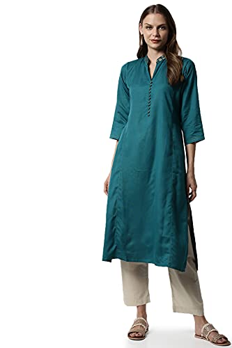 Soch Teal Viscose Rayon Solid Kurti