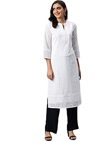 Soch White Poly Georgette Embroidered Kurti