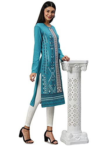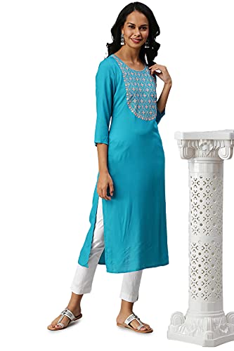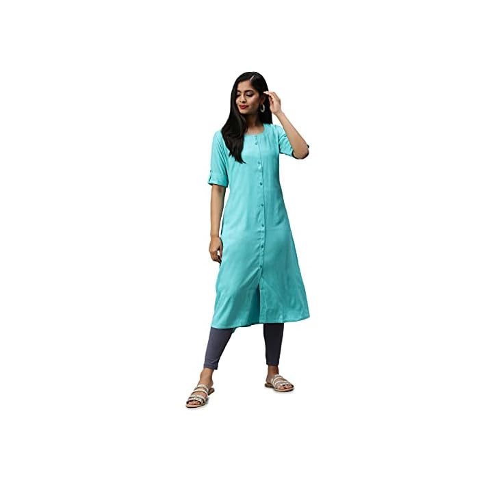 Soch Turquoise Blue Viscose Rayon Solid Kurti