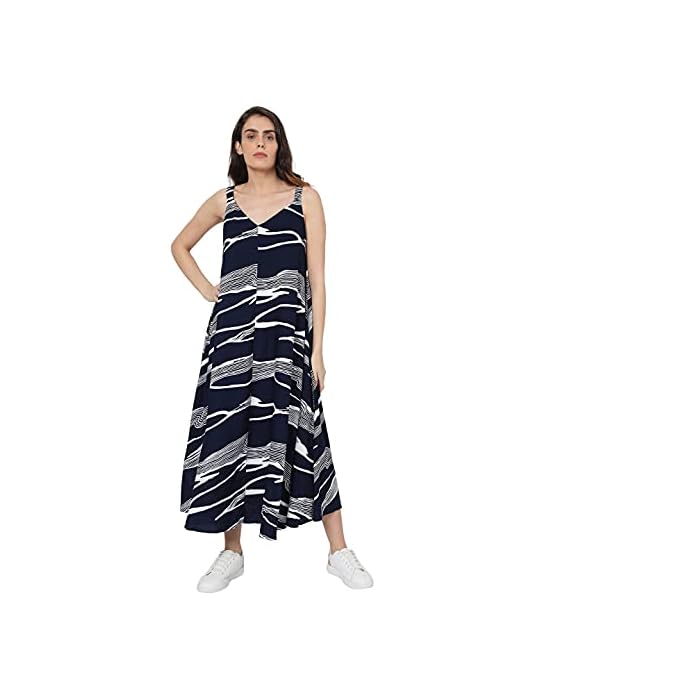 VERO MODA Women’s Viscose A-Line Below The Knee Casual Dress