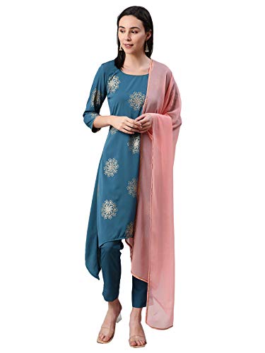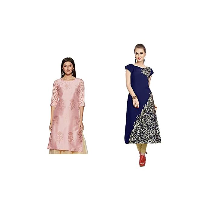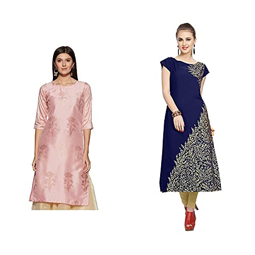 ZIYAA Women’s Synthetic Straight Kurta + Women’s Blue Color Floral Print Straight Crepe Kurta