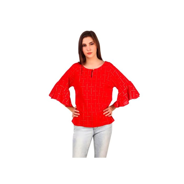 HARVIPOP Half Sleeve RED Top Embellished Bell Sleeves
