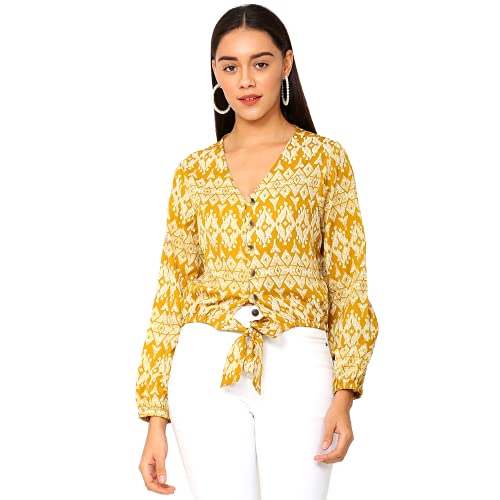 HARVIPOP Chevron Latern Sleeves Front Knot Top