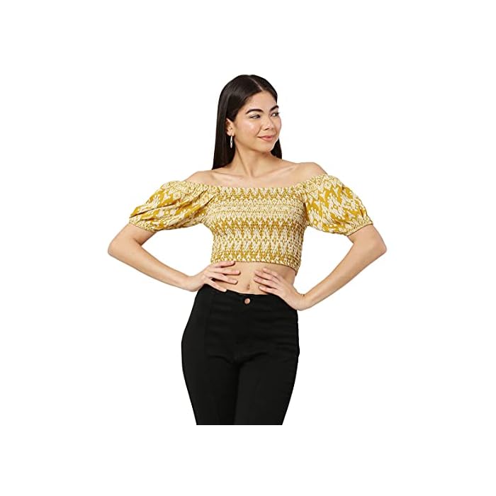 HARVIPOP Shoulder Less Crop Top