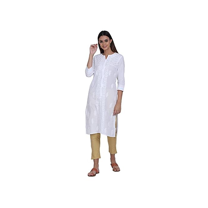 Paramount Women’s Chikankari Cotton White Front Open Kurti