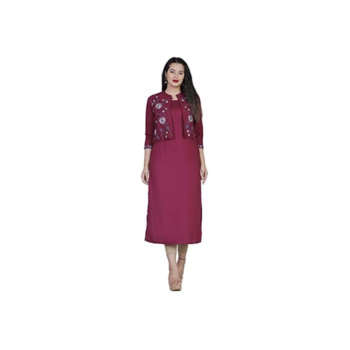 Rj Craft A-line Rayon Wine Gown Kurti for Women