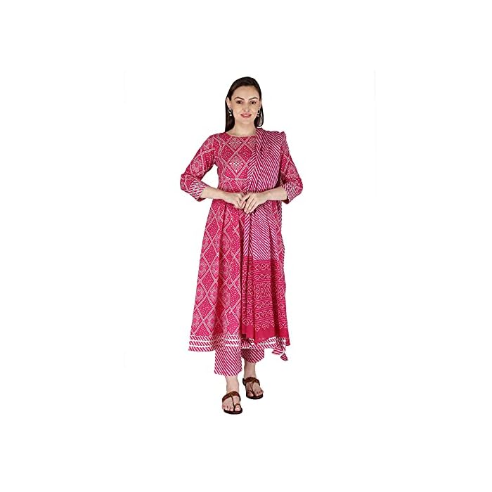 NS DESIGN Women’s Cotton Regular Fit A_Line Kurta & Pant Set with Dupatta