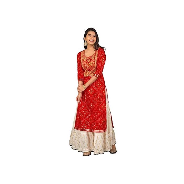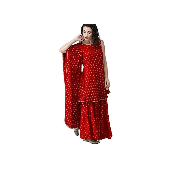 ANNI DESIGNER Women’s Rayon Gold-Toned Printed Kurta with Sharara & Dupatta (Set of 3)(RED) ₹799 Add to cart