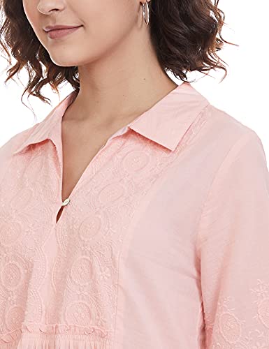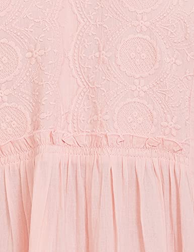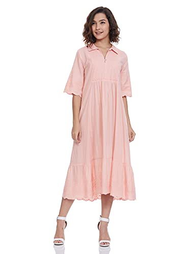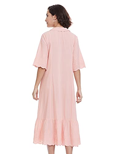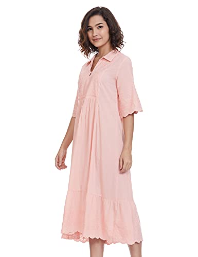 Pink Schiffli Cotton Short Sleeve Midi Dress