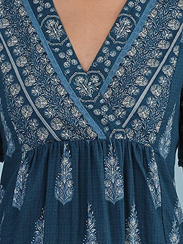 Short Sleeve V Neck Printed Dress With Lace At Yoke
