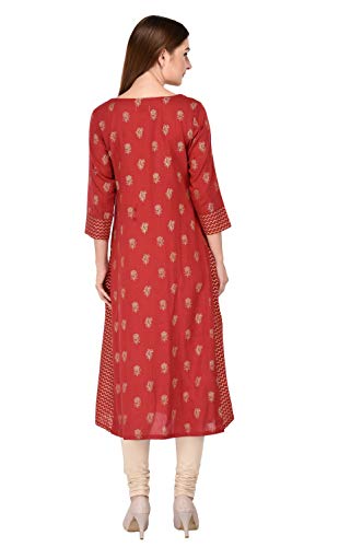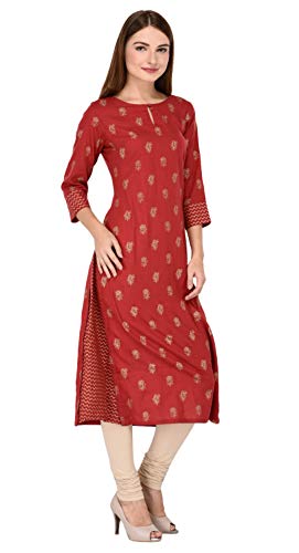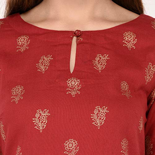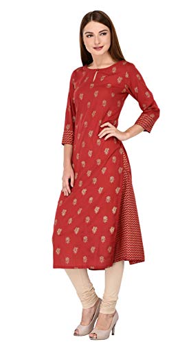 Flaunt sartorial elegance wearing Maroon coloured gold printed A-line kurta by Amayra. Look classy and stylish in this piece and revel in the comfort of the soft cotton fabric.This piece can be matched with either leggings or worn as a dress for a fashionable weekend ensemble.