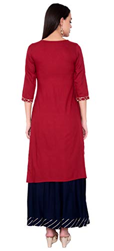 Material: Rayon; Color:Maroon& Blue; Pattern: Solid