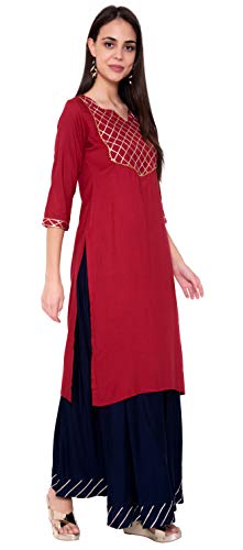 Note:- Model(height 5.8”) is wearing size S. Length of kurti is 46 inches and Palazzo is 40 inches