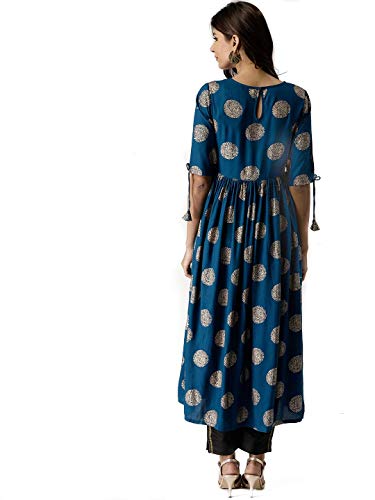 AnjuShree Choice Women Stitched Gold Printed Dark Sky Blue Cotton Anarkali Kurti Kurta