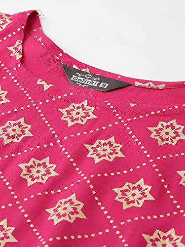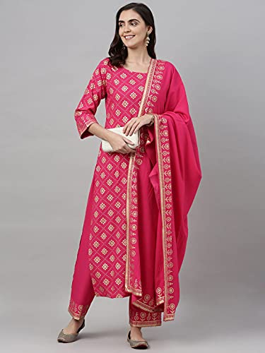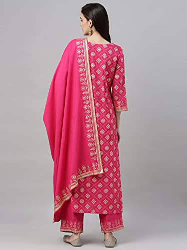 ANNI DESIGNER Women’s Cotton Foil Printed Straight Kurta with Pant & Dupatta(NAVLIK-PINK-001__)