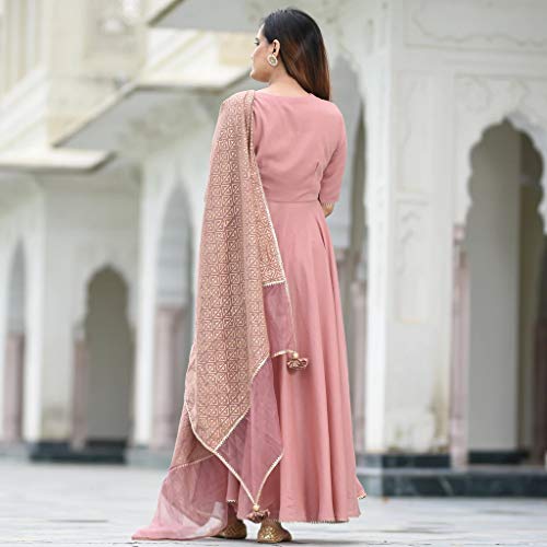 ANNI DESIGNER பெண்களுக்கான தூய காட்டன் அனார்கலி குர்தா, பலாஸ்ஸோஸ் மற்றும் துப்பட்டா (SUBHA-PEACH_L)