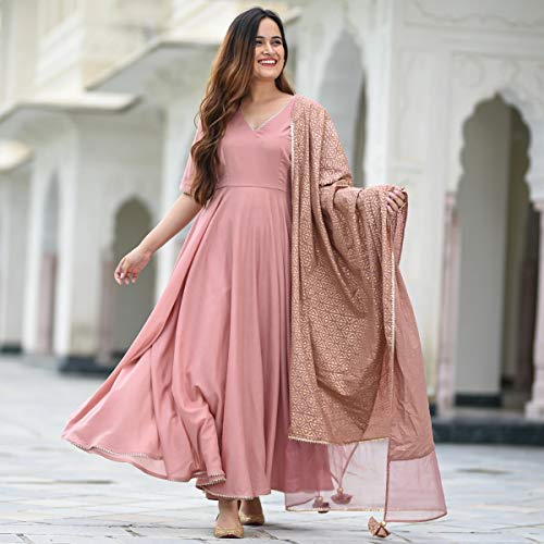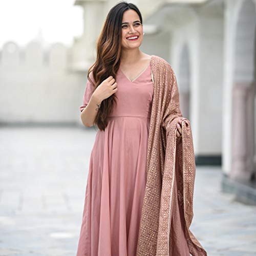 ANNI DESIGNER സ്ത്രീകളുടെ ശുദ്ധമായ കോട്ടൺ അനാർക്കലി കുർത്ത, പലാസോകൾ, ദുപ്പട്ട (SUBHA-PEACH_L)