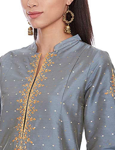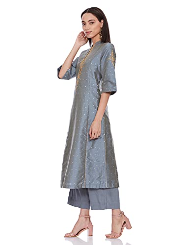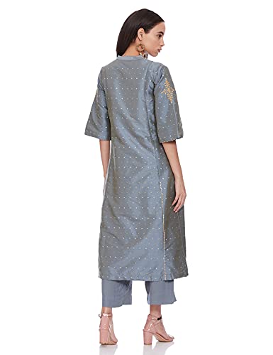 Band Collar 3/4 Sleeve Embroidered Kurta With Pants