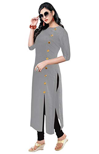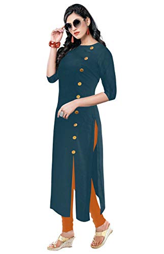 Design : plain designs formal wear with wooden buttons round neck kurtis style for women