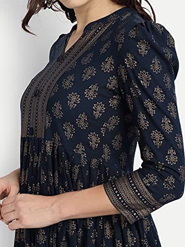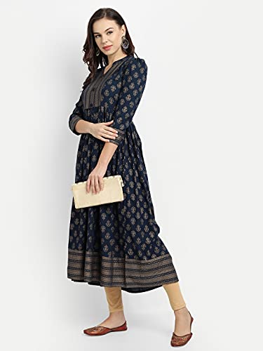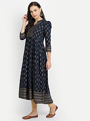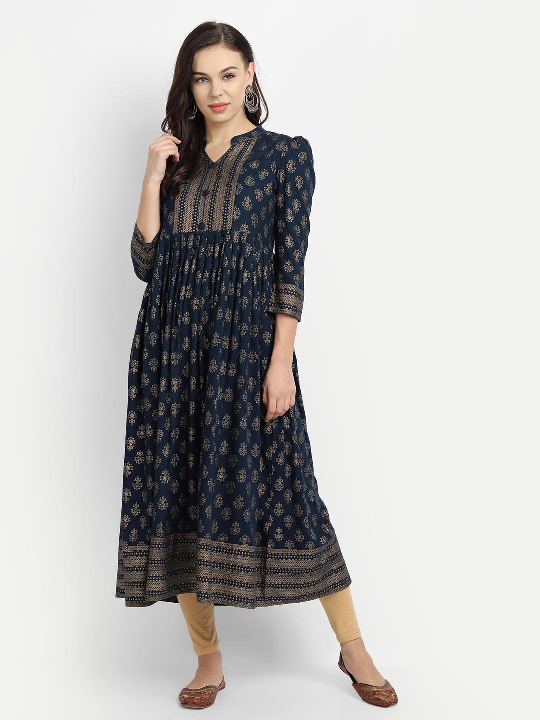 here is the fancy Kurti by Feliza With Madhuam textiles ideal for parties and festivals our Kurtis are made and stitched using high-grade fabrics Rayon and yarns under the strict surveillance of our well-versed executives we are offering our products at the most reasonable prices and good quality .this stylish Anarkali dress And Navy Blue Clour comes with trendy 3/4 sleeves and for the more stylish look we also Long a kurta is quite an essential part of a women’s ethnic collection it is a popular ethnic garment which finds its place in every occasion be it a festivity or a wedding or even as a part of your daily wear an Anarkali Kurta can go very well with the occasion of choice when matched with the right kind of accessories and footwear