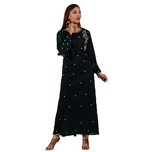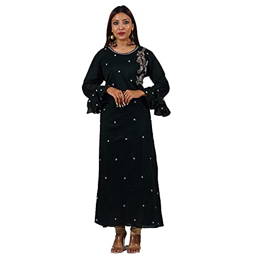 GLACE Jute Cotton Fabric Floor Length Kurti with Light Embroidery Kurti for Women (42)1 × ₹0