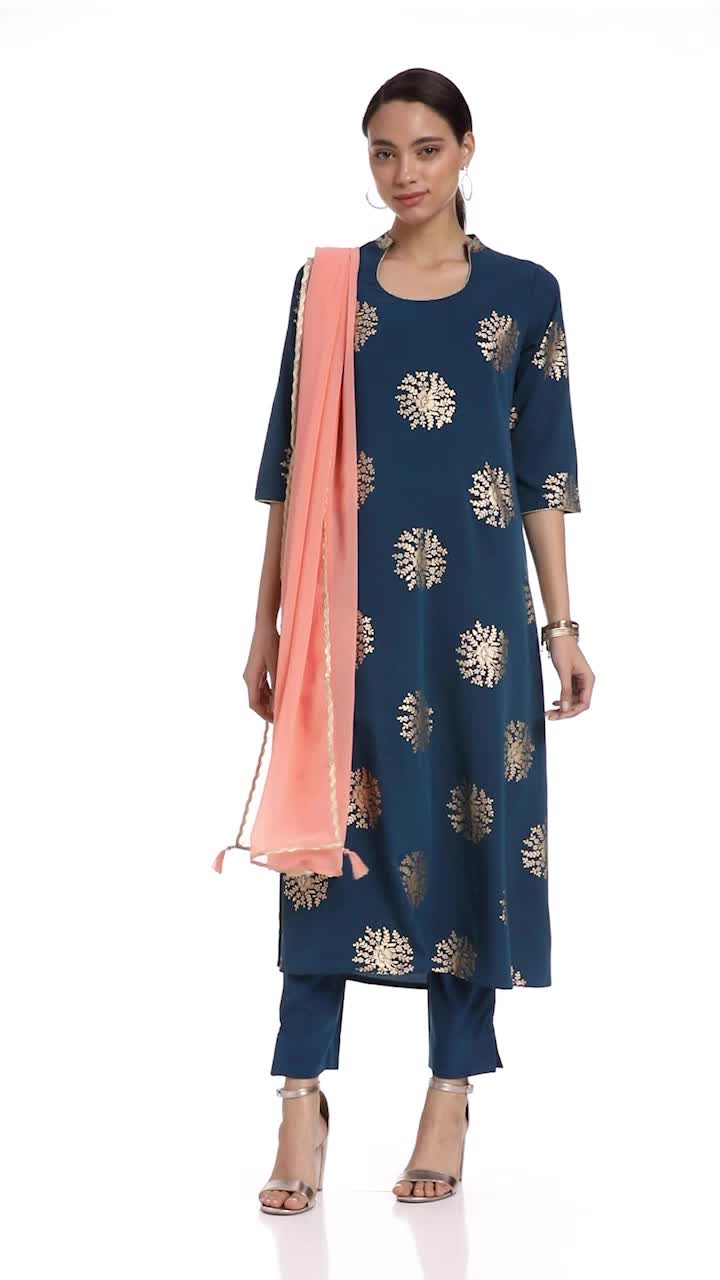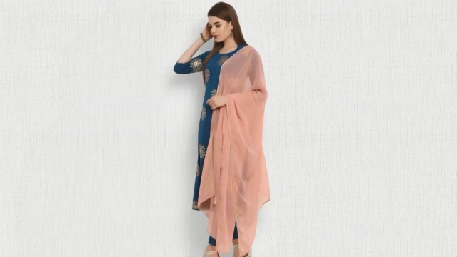 Style: A-Line Kurta of length 49″ with 3/4 Sleeve; Pant of length 36″ Dupatta of Length 2.25 Mtr