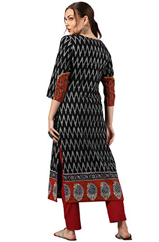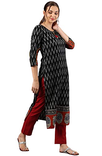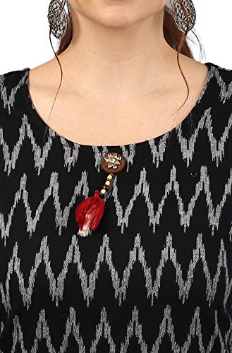 This stylish ikat kurta from Janasya is made of pure cotton and comes in an attractive Black color. It features 3/4 sleeve, round neck, straight and it is calf length kurta that is suitable for casual occasions. Team it with matching leggings for a chic look.