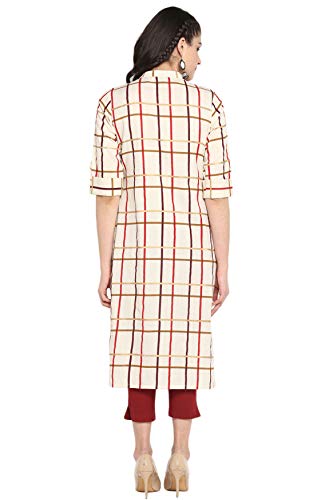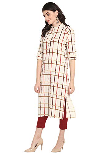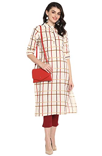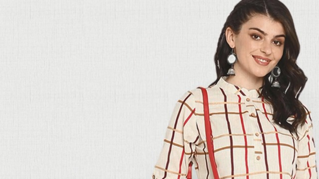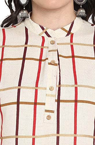 You’ll love the elegant design and fit of this stunning cream coloured kurta from Janasya. This checkered cotton flex kurta features mandarin collar, three quarter roll-up sleeves, wooden button placket and a touch of gold coloured foil print to add that swankiness in this simple kurta. Team this comfortable kurti with a pair of distressed jeans and flats for a casual day out.