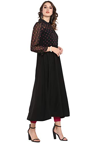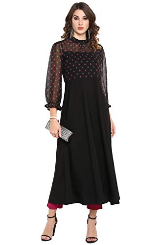 Style: A-line 52″ length Polka Print Kurta with Full Sleeves