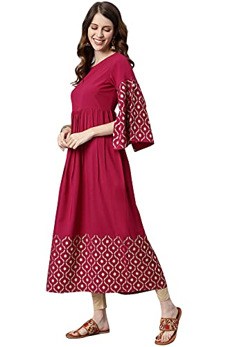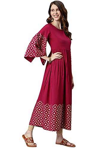 This stylish, trendy piece from Janasya is must have kurta for your wardrobe. It has beautiful flower motifs on hemline and bell sleeves for the trendy look. This kurta is best suited for any casual day outing or less formal event.