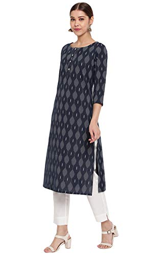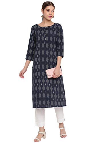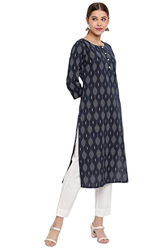 Breathtakingly beautiful with navy blue colour, this kurta from janasya is a show stopper. It is effortlessly classy and gorgeous with a round neck, three-quarter sleeves, straight silhouette, and button placket on the neckline. With a touch of modernity, this kurta will make your whole appearance attractive. Style it with pants or vintage denim for a complete look