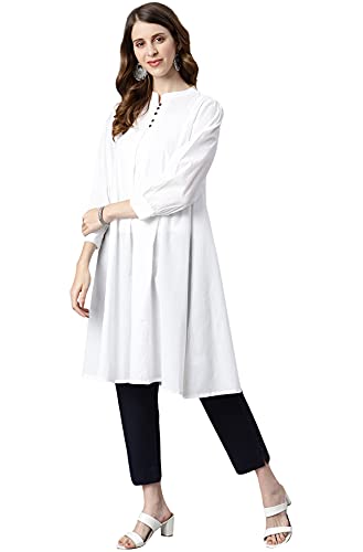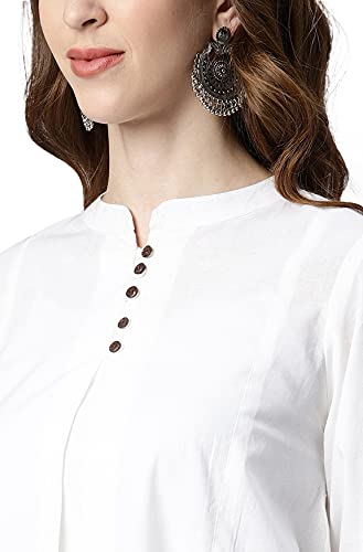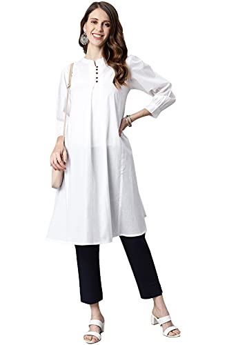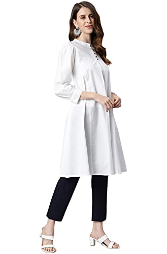 Opt for casual simplicity with this white tunic from Janasya. Made from cotton, it is tailored in panel style with button and loop, mandarin collar and puff sleeves and will provide you with immense comfort throughout the day. Style this stunning tunic with a pair of pants, strappy heels and statement accessories to complete the look.