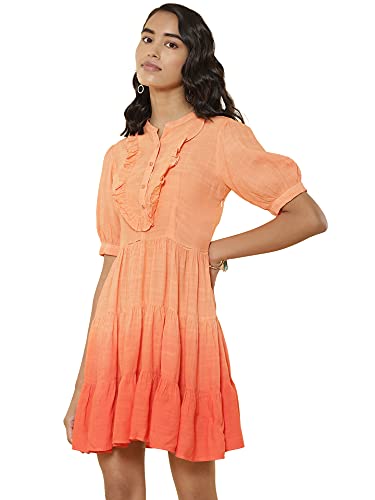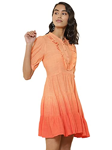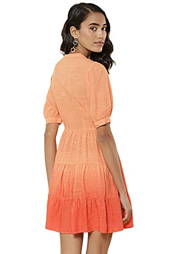Band Collar Half Sleeve Short Dress