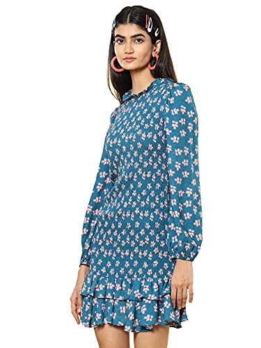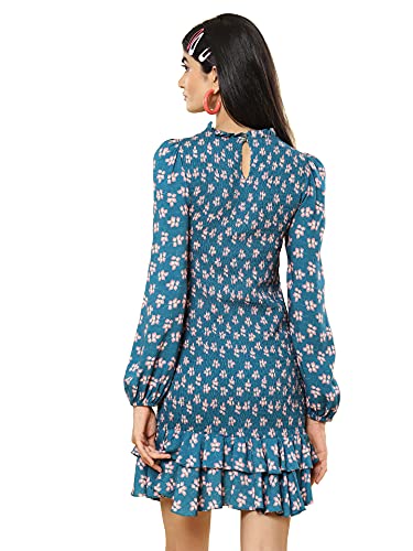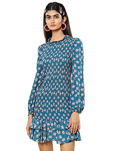 Round Neck Full Sleeves Printed Short Dress
