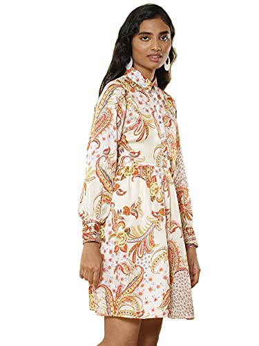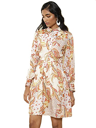 Collar Neck Full Sleeves Printed Short Shirt Dress