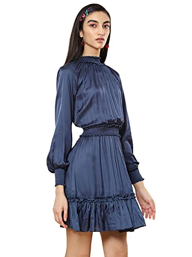 Round Neck Full Sleeves Solid Short Dress